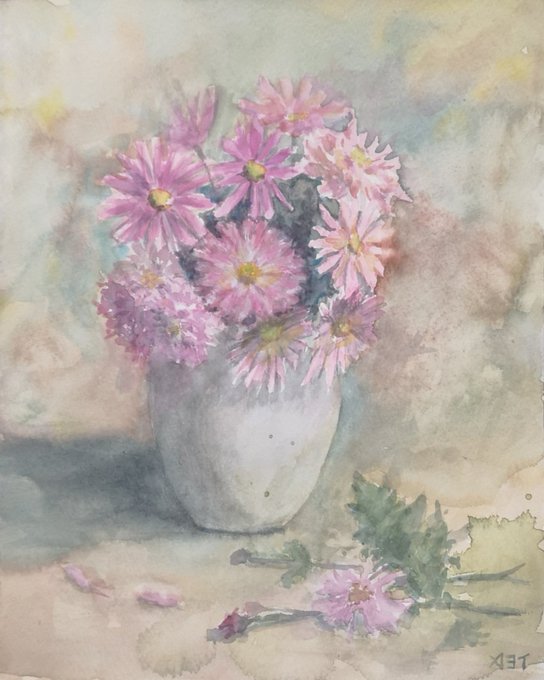 I painted a wild #chrysanthemum in #watercolor. Before I knew it, these #flowers were growing in the parking space at my house. 野菊を描きました。勝手にうちの駐車場に咲いてたやつ。 #watercolour #watercolorpainting #Watercolourpainting #stilllife #artwork #水彩画 #静物画 #菊