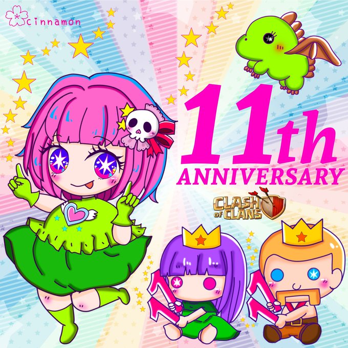 クラクラ11周年✨🌸✨ おめでとうございますー!🥳✨ なんだかんだで私も、9年くらいやってます。長いなぁ😳✨ 一番好きなドラゴンを描きたくて、ドラゴンメインにお祝いイラストを描かせていただきました🥰✨ 今後とも、よろしくお願いします🎈✨ #クラクラ11周年 #Clashiversary #クラクラ鋭角部 twitter.com/momotaro2112/s…