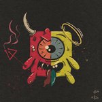 Today's theme is 'Ego'. Good or evil ? Ying or yang ? Angel or devil ? That's what came to my mind spontaneously. A new monster weirdo. Available in my Thrown Together Collection as 1:1 @objktcom @The_GhostClub Link below 👇 #CleanNFTs #tezosart #inktober2022 #ego