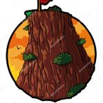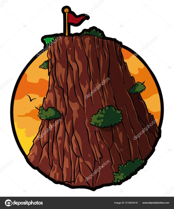 #Inktober Day 20: Rocky #bluff 🌄 decorated with waving red pennant inside round button with sundown sky. depositphotos.com/615934416/stoc… #inktober2022 #drawing #illustration #digital #vector #cliff #mountain #sunset #landscape
