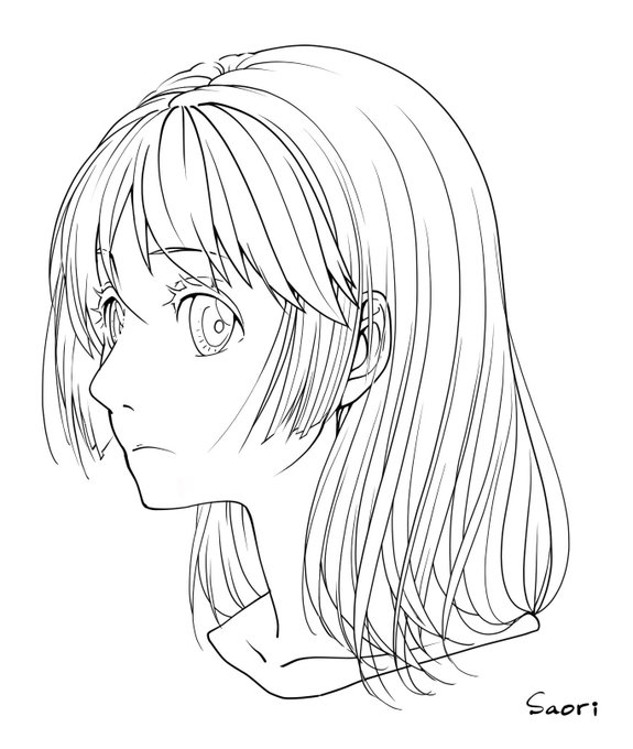 本日の練習イラスト! 70度の傾き加減で顔を描いてみるという課題。仕上がった後何度もちまちま修正してたら自分でも何してるのかよく分からなくなっちゃった😭💦 #イラスト #斜め顔の練習 #clipstudiopaintpro #線画 #塗り絵出来そう #お絵描き講座パルミー