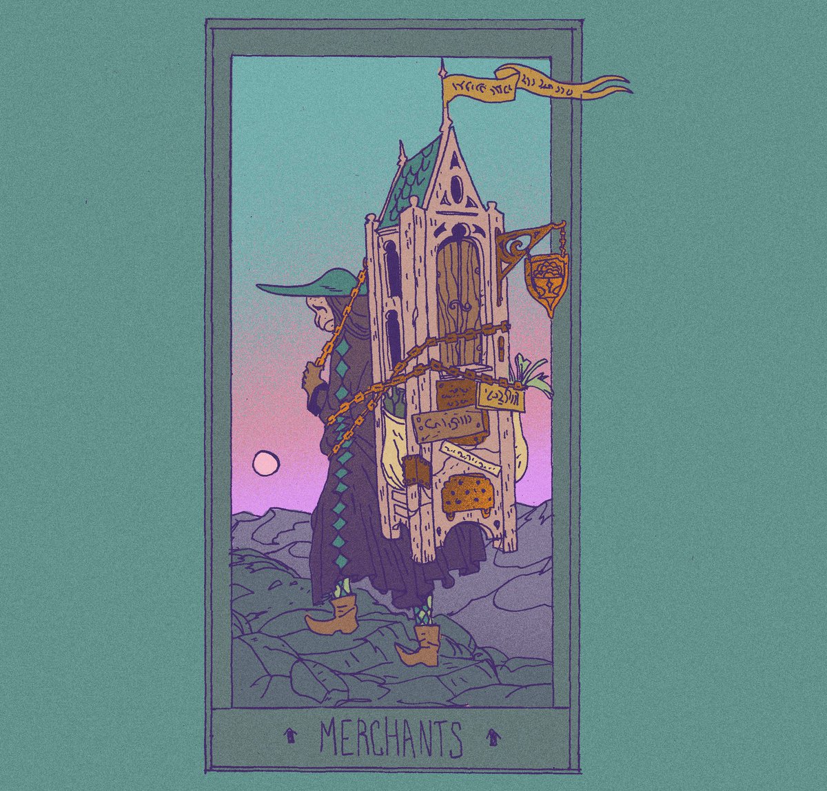 #cloaktober 20. Merchants Cloak Every month Nadine came back to trade the grimoires and manuscripts she recovered from the old forgotten monastery. Some of them were dedicated to medicine others to fables and history, but she kept for herself those about spicy romantic poetry.