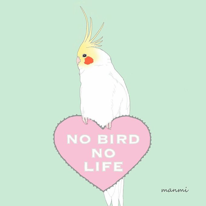 おはようございます 『NO BIRD NO LIFE』❣️ ロゴ入りイラストに初チャレンジ 良き1日をお過ごし下さい☺️ #オカメインコ #Nymphicushollandicus #Cockatiel #bird #illustration #お絵描き #イラスト #お絵描き練習 #毎日お絵描き
