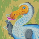 Inktobit [inktober X octobit prompts] Day 24 [extinct X cocktail party] Ain't this the fanciest thing you've seen? A dodo sipping a cocktail XD #pixelart #pixelartist #art #ArtistOnTwitter #octobit #inktober #inktobit #cocktail #extinct #dodo #cocktailparty