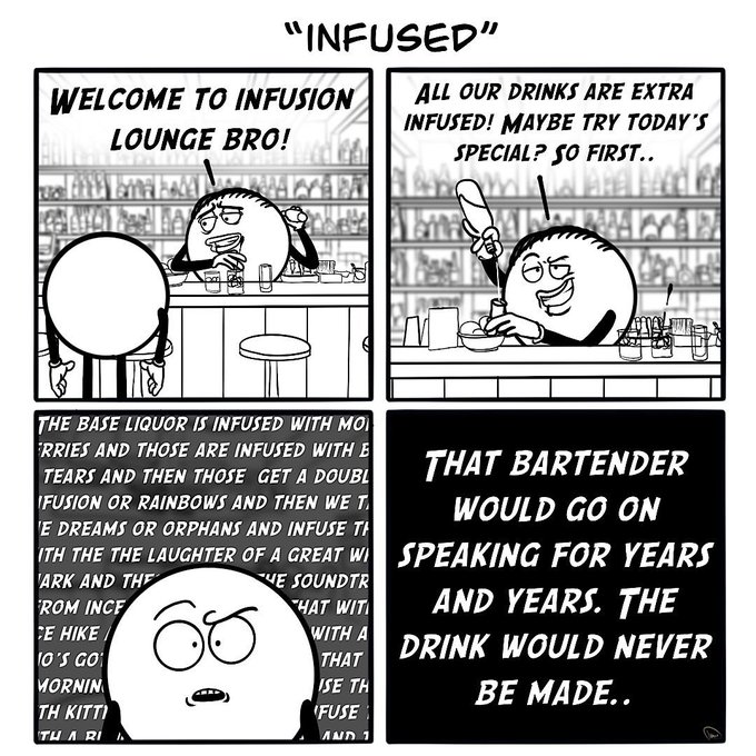355/365 55mins Procreate on iPad. A.I.nktober prompt #5 “Infused” Cheers to are my bartenders out there! Enjoy! #art #digital #painting #365daychallenge #procreate #ipad #procreateart #illustration #character #botober #inktober #Comedy #comic #bartender #cocktail #serviceindustry