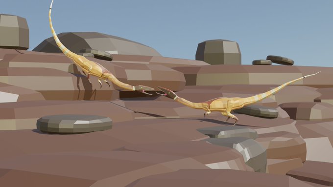 Group of Coelophysis are trying to take down young Plateosaurus #paleoart #lowpoly #triassic #Coelophysis #Plateosaurus