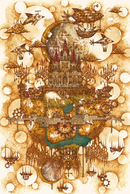 #Twitterをしている全ての人に届け私の作品 本物の珈琲で彩る珈琲水彩画です。 珈琲好きな人 毎日コーヒーを飲む人 絵本好きな人 アンティークな風合いが好きな人 ファンタジー好きな人… 趣味の合う皆様に届くと嬉しいです* #珈琲水彩 #コーヒー水彩 #coffeeart