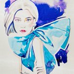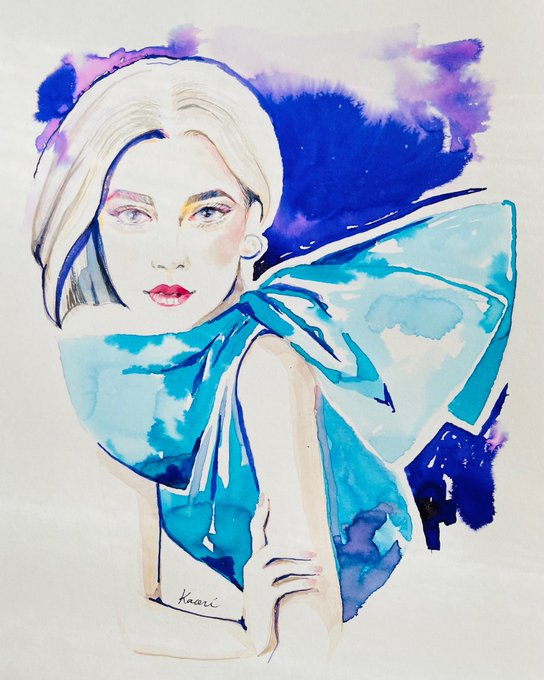 パールのイヤリングとブルーのリボンドレス。今夜は今年最後の満月 #コールドムーン が見られるそう。寒い時期に見える月は綺麗ですね🌕 #art #artwork #illustration #pearl #coldmoon #kaorinakazato #fashionillustration #watercolor #blue #dress #イラスト #水彩イラスト #透明水彩イラスト