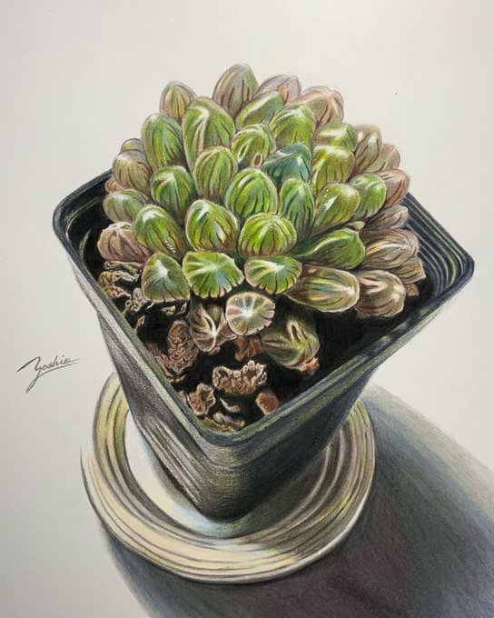 色鉛筆で描いた、 「ハオルシア」|•'-'•)و ぼんぼん先生の 色鉛筆画教室のお題です🐶✨ #色鉛筆画 #色鉛筆 #ハオルシア #coloredpencil #coloredpencildrawing