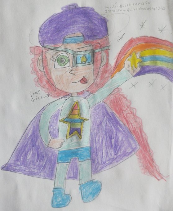 It's finally finished! ✨⭐🌈 Super Hero OC: Star girl is here!🌈⭐✨ #SuperHeroOC #OC #ocart #originalcharacter #originalcharacterart #Sketch #drawing #coloredpencil #pencil twitter.com/LittleNova20/s…