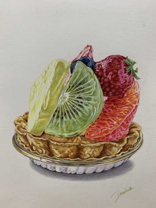色鉛筆で描いた、 「フルーツタルト」🥝🍓 イロドリアルさんの、 「色鉛筆画上達ドリル(基本編) P.32〜37 フルーツタルトを描く」 を参考にして描きました✨ #色鉛筆画 #フルーツタルト #色鉛筆画上達ドリル基本編 #今月描いた絵を晒そう #coloredpencil #coloredpencildrawing