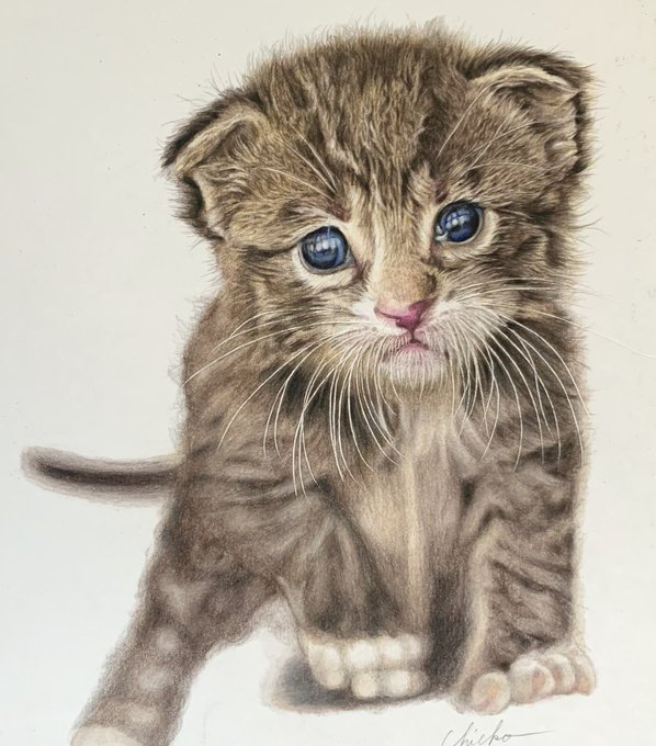 音海はるさんの『リアルすぎる色鉛筆テク』より「スコティッシュフォールド」を描こう①を色鉛筆で描きました🐈 #リアルすぎる色鉛筆テク #音海はる #猫 #色鉛筆画 #coloredpencildrawing