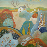 This is my painting "A Sense Of Wonder". The original is sold but you can find very nice prints of it here: fineartamerica.com/featured/a-sen… #art #painting #arte #kunst #painting #contemporaryart #ArtistOnTwitter #landscape #stripes #trees #mountains #artprints #house #flowers #colorful