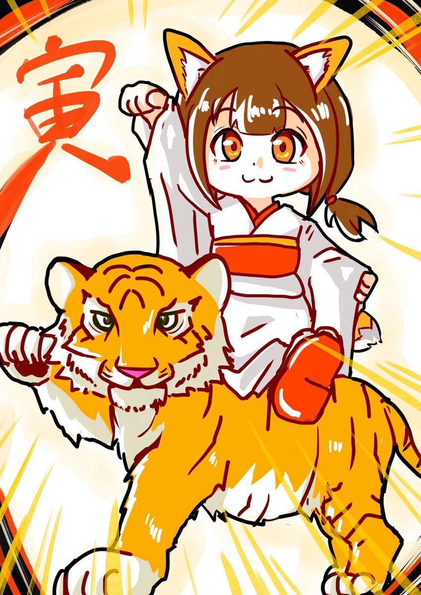 蒼空さん(@thina1225 )のお絵描き企画! お正月のナギちゃん(仮)を描かせて頂きました(*´ω`*)✨ #ColorlessCountry #HappyNewYear2022 #寅年 #絵柄が好みって人にフォローされたい #絵描きさんと繋がりたい #イラスト
