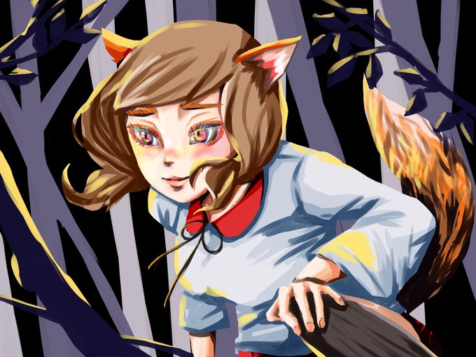 蒼空さん@thina1225 が主催のお絵描き企画にお誘い頂きまして、蒼空さんオリジナルキャラクターの(狐の女の子・ナギちゃん)描かせて頂きました☺️✨ 耳付きの人物、可愛くて好きです😍 #カラカン #ColorlessCountry