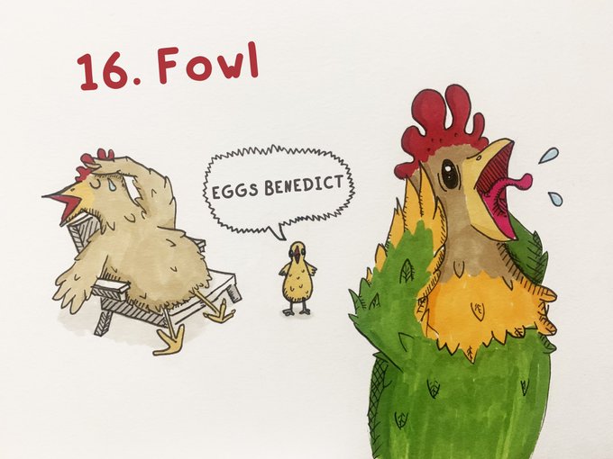 #inktober day 16: #Fowl The day parents fear, their lil one’s learning about curse words. #inktober2022 #inktoberday16fowl #ink #doodle #drawing #chicken #cockrell #chick #swear #promarker #coloured #winsorandnewton #alchoholmarkers