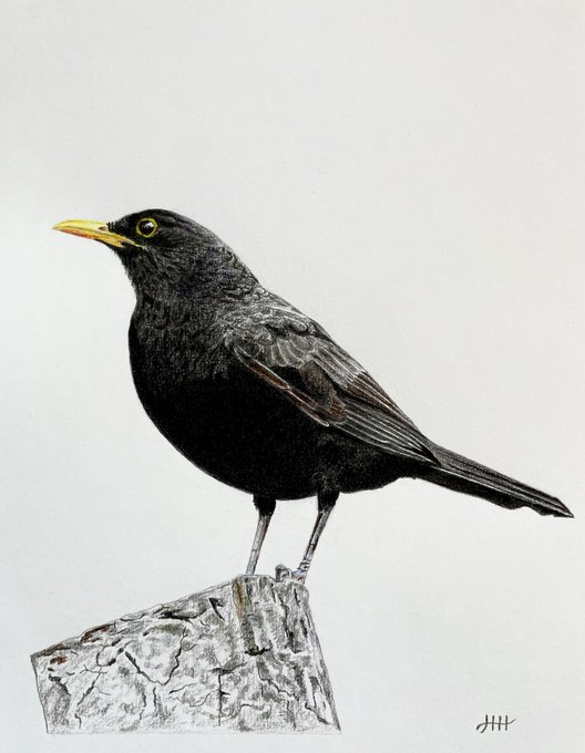 My drawing with coloured pencils is finished ✍️ A blackbird #blackbird #bird #colouredpencil #drawing #art #artistsontwitter