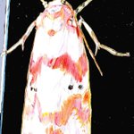 アカスジシロコケガ。丘の上の公園にて見つけました。公園内の公衆便所の中でキョロキョロして、ニヤリとしておもむろにカメラを取り出し、壁に向かって撮影。客観的に怪しい。背景はパソコンで黒く塗りました(めんどいからな)。 #色鉛筆画 #みんなで楽しむTwitter展覧会 #colouredpencil