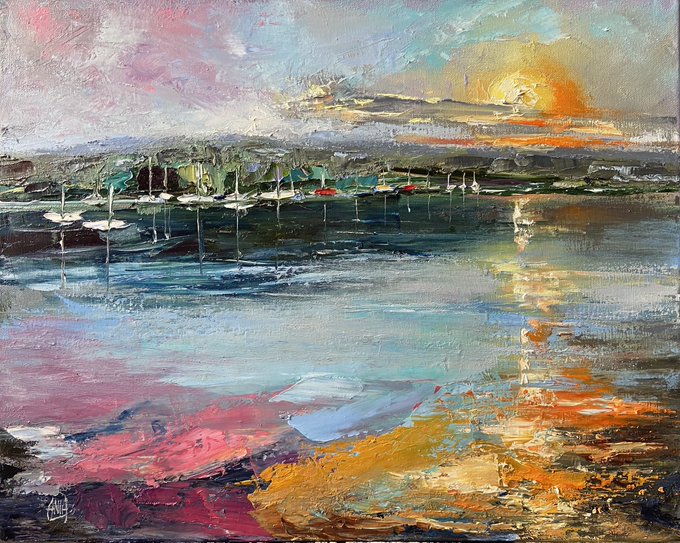 One of my favourites painting from last year. Sunset Glory 🧡 #oilpainting #seascape #contemporaryart #colours #sunset #art #artwok #passion
