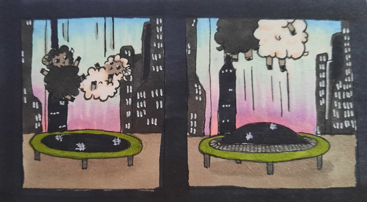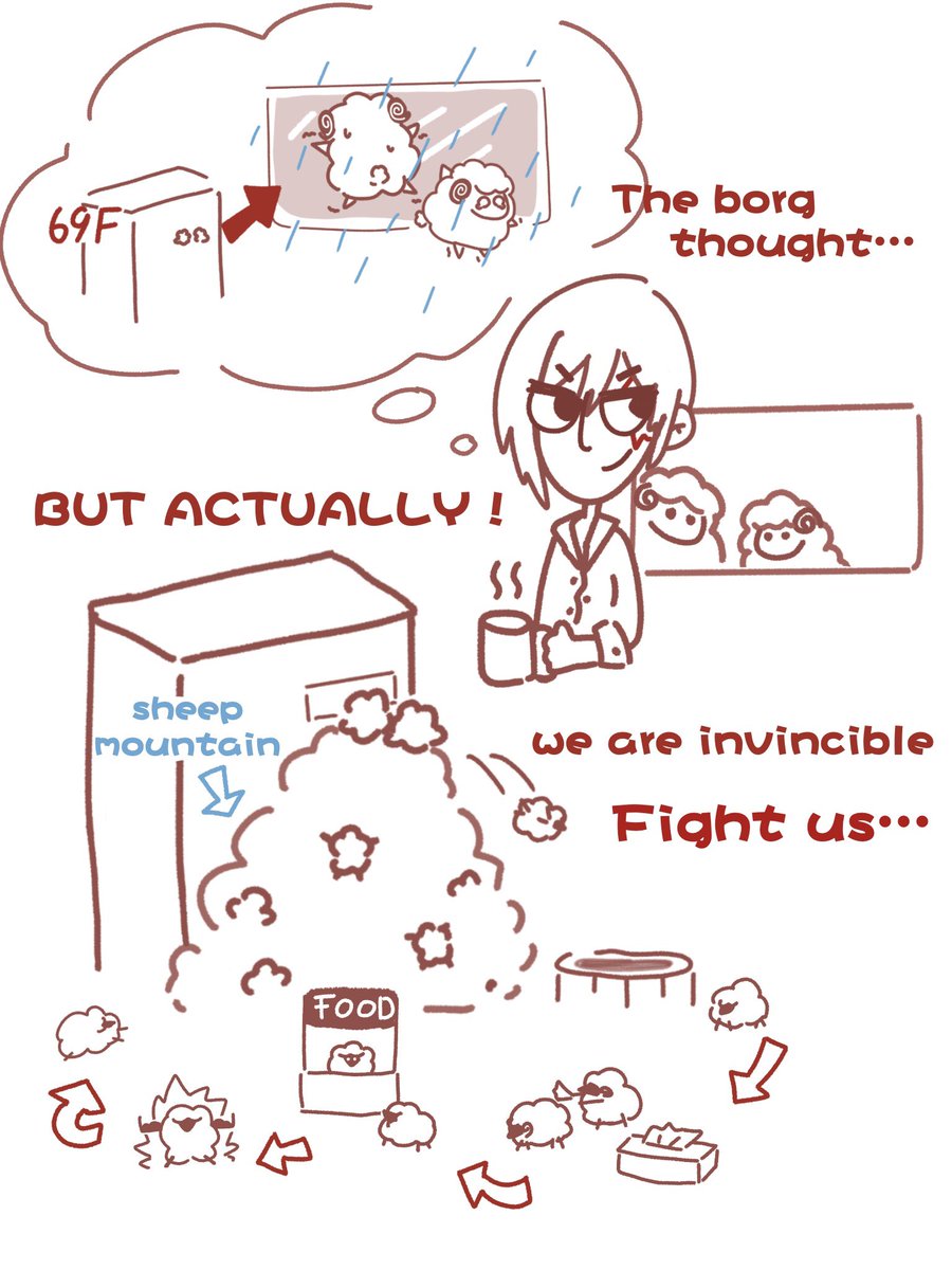 The borg thought we were weak.But actually! We have a whole climb back up system 😈 We fall on the trampoline➡️We dry each other➡️We get some food➡️We full of energy➡️ We use the sheep mountain to climb back up👑 We are invincible💥 Fight us… #Artchivist #Comfydants #Fulguma