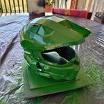 Halo 4 helmet had it's first coat of green. Still thinking I should do a battle damaged version of it. What do you guys think? #xbox #Halo #cosplay #3dprinting #3dprinted #ComicConAfrica