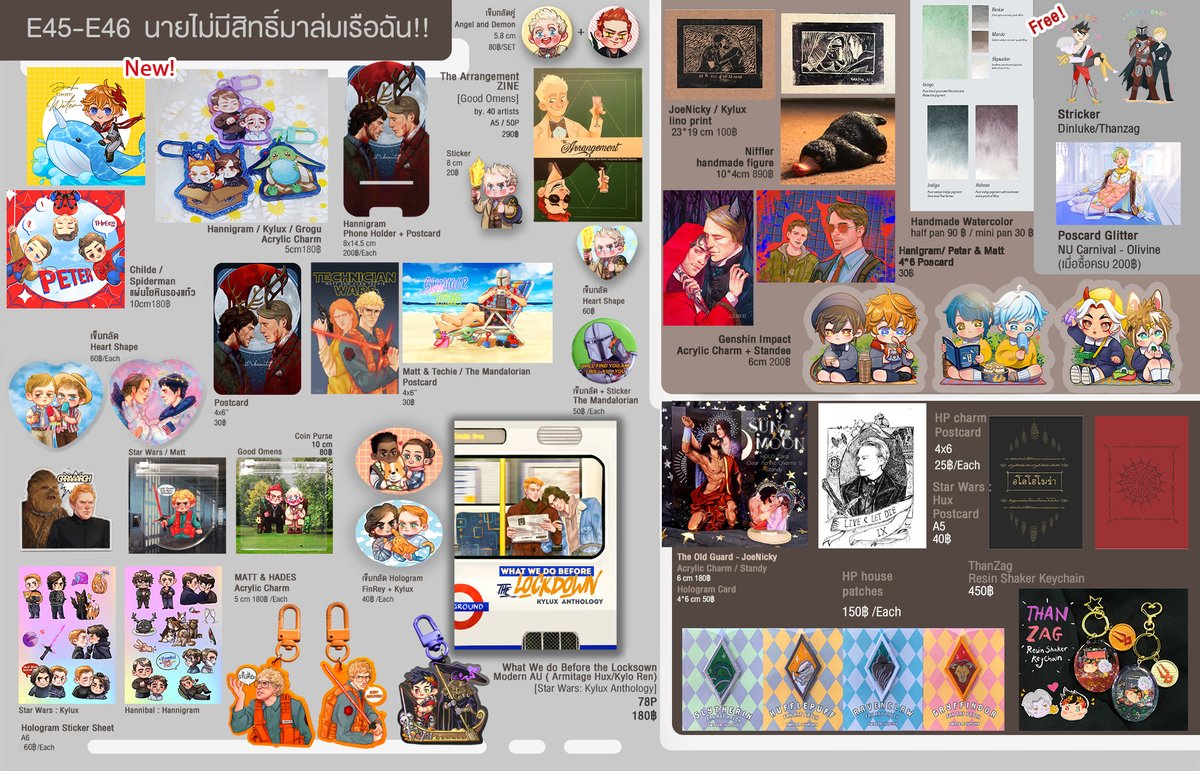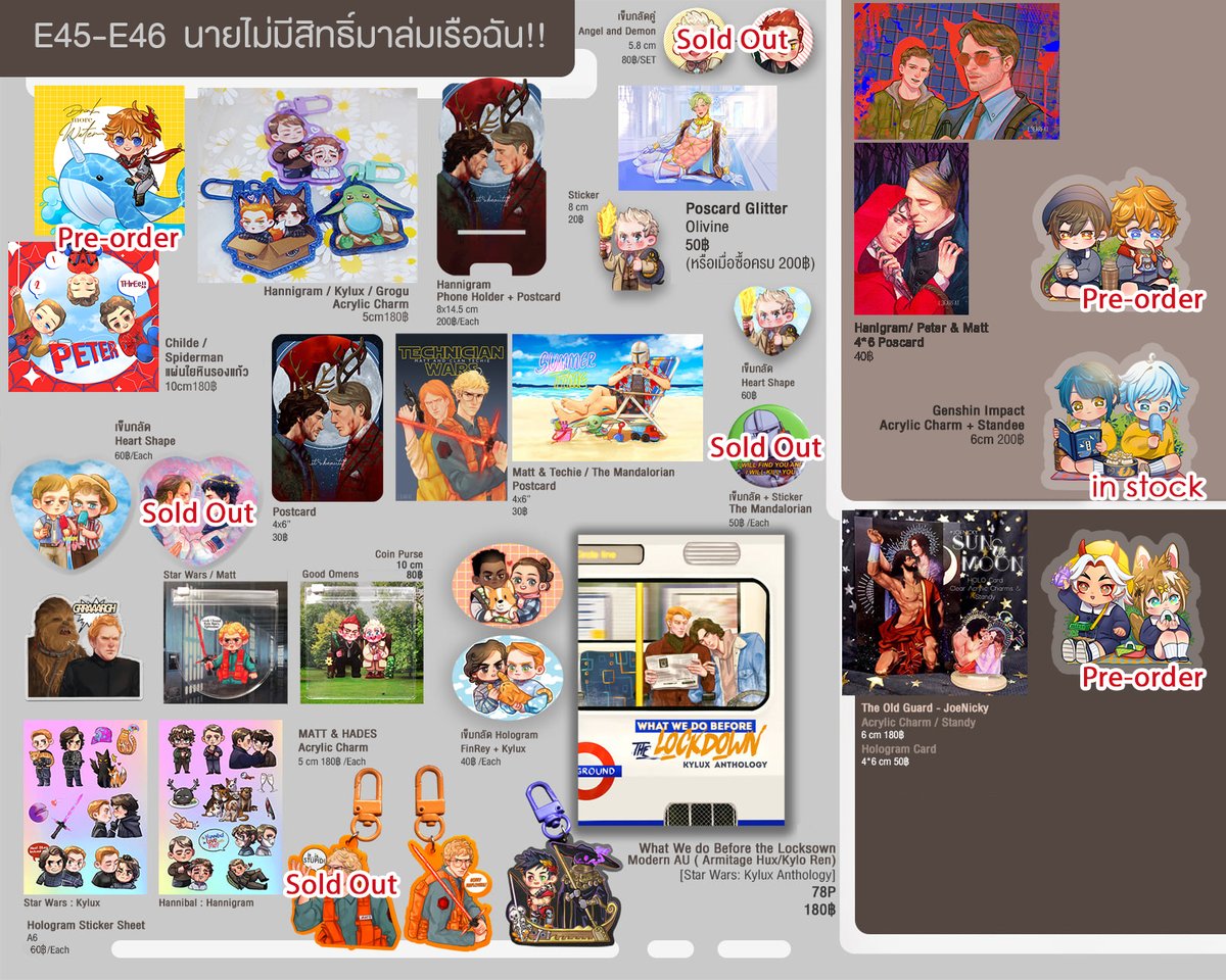 ใบเมนู บูธ E45-46 นายไม่มีสิทธิ์มาล่มเรือฉัน ที่จะลงงาน #CQ5 #comicsquare5 คงไว้ความหนาแน่นมากมายหลากหลายด้อม Star Wars / The Mandalorian / Hannibal / Harry Potter / Fantastic Beasts / Good Omens / Spiderman / Daredevil / The Old Guard / Hades / Genshin Impact เฮ้อเยอะเหนื่อย
