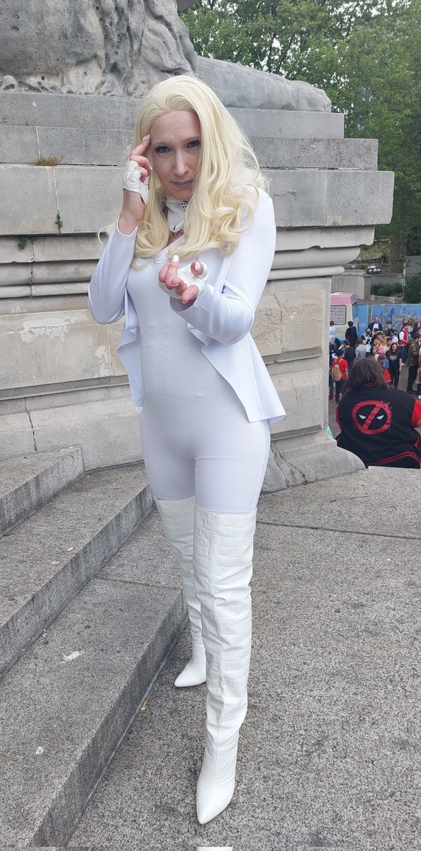 Emma Frost, White Queen of the X-Men, knows what you're thinking 🤔 #XMen #cosplay @PComicCon @rdauterman @uk_pcg #ComicsAreForEveryone