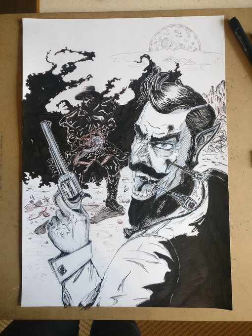 So I did a wraith of god drawing. Here's hoping @aaronlopresti breaks that 6 figure mark tonight on #comicsgate kings Wraith of god: Blood hunters looks amazing. Be one of the backers that pushes it to 6 figures tonight!!! indiegogo.com/projects/aaron… #inktober2022 #indiecomics