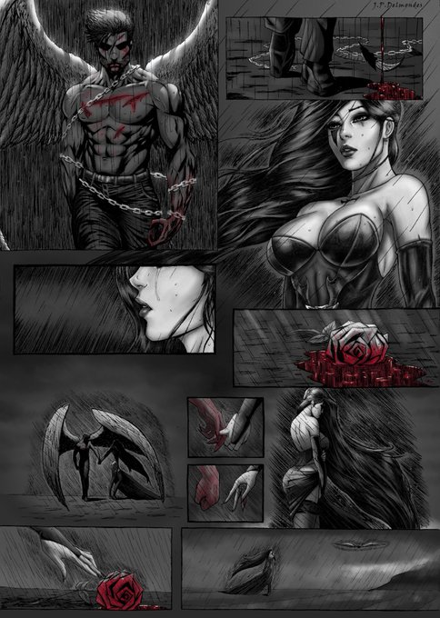 That's all ketchup, I swear. And yes, this will be in full color, calm yo tits. #inking #comics #ComicsGate #sketch #ArtistOnTwitter #GazeCommunity #goth #WIP #anime #manga