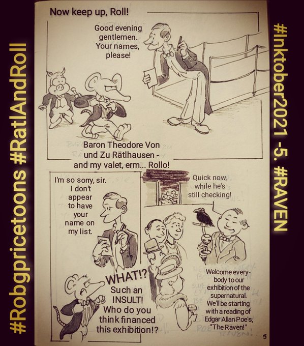 Day 5 of #inktober and the prompt for today's installment of my #RatlAndRoll #mini_story is #RAVEN Quoth the #Raven #nevermore #EdgarAllanPoe #inktober2021 #comicart #comicstyle #inksketch #InkDrawing #Comics_are_art #comicart #cartoonstyle #comicstrip #sequentialArt