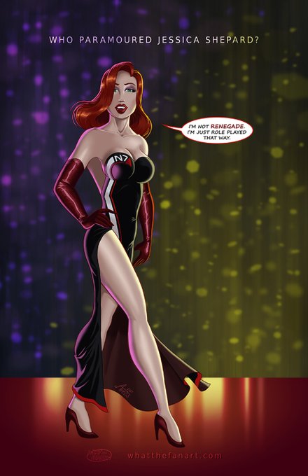 Happy Bday Commander Shepard! When it's time to get out of armor for a Citadel party, everybody's favorite Spectre knows how to impress!!🥳 @masseffect @bioware @jhaletweets #happybirthdayshepard #commandershepard #masseffect #n7 #mashupart #jessicarabbit #fanart #whatthefanart