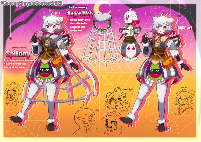 name: Spitony 🕷🍬🍭 ━━━━━━━━━━━━━━ A terrifying spider girl coming to Halloween ... She eats up all the Halloween sweets...!! It's a scary and cute monster!!! My entry for Concept Royale〜!!!!☺❤ #Fortnite #FortniteArt #FortniteConcept #ConceptRoyaleContest2022