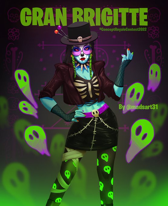 💀 Gran Brigitte 💀 ''The goddess of life and death, if you offer her pepper-infused rum, she will stand guard over graves and tombstones... sometimes she'll just be the life of the party.'' This is my entry for #ConceptRoyaleContest2022 I hope you like it! #FortniteArt