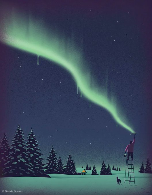 "Winter Painting" by @DavideBonazzi2, represented by @SalzmanArt. Explore more by Davide Bonazzi: buff.ly/3lXuEuG #LeadwithCelebration #celebrate #winter #winterpainting #northernlights #conceptual #conceptualillustration #illustration #conceptualillustrator #holidays