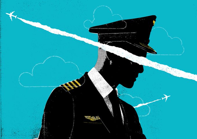 Editorial illustration by #JayVollmar about airline pilot fatigue. Represented by @IllustrationZo1 Explore more: buff.ly/2V7q6HL #illustrator #illustration #illustrationart #editorial #editorialillustration #pilot #mentalhealth #conceptualillustration #art #artwork