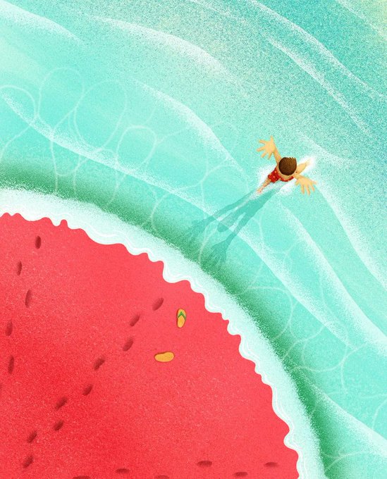 Taste of summer! Illustration by Sara Gironi Carnevale (@SaraGironiEtc), an award-winning Italian illustrator. Explore more work by Sara: buff.ly/35jGYhv #summbervibes #watermelon #beach #illustration #conceptualillustration #coverart #editorialillustration