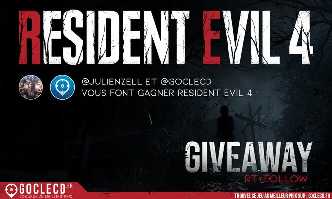 🎁GIVEAWAY🎁 #CONCOURS #ResidentEvil4Remake 🧟♂️🧟♂️🧟♂️🧟♂️ Tu veux sauver la fille du Président avec ce BG de Léon ? C'est facile 👉FOLLOW @Goclecd et @JulienZell 👉LIKE et RT ce tweet ⏳TAS le 31/03⌛️ Les meilleurs jeux aux meilleurs prix 👉goclecd.fr/?partner-omega… 🧟♂️🧟♂️🧟♂️🧟♂️