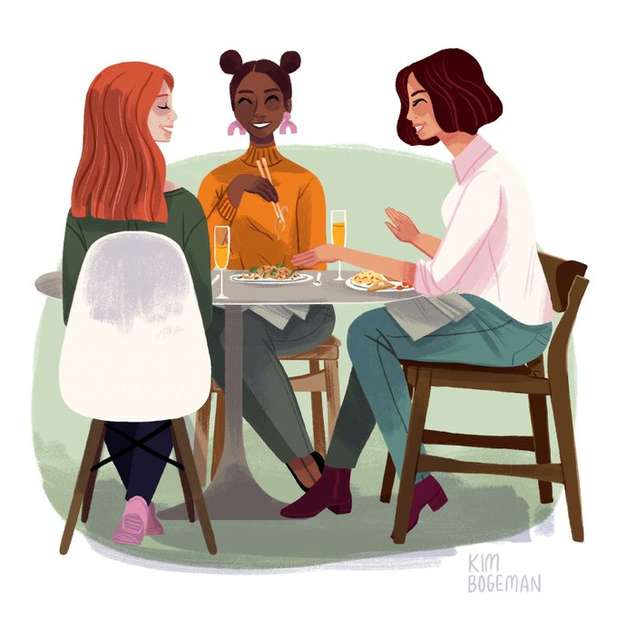 What's your favorite way to connect with others? Sharing a meal is one of our favorite ways! Illustration by Kim Bogeman. Explore Kim's portfolio: buff.ly/3Q8wgPu #LeadwithConnection #connection #conversation #meals #brunch #digitalart #editorialillustration #food