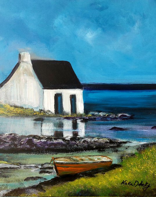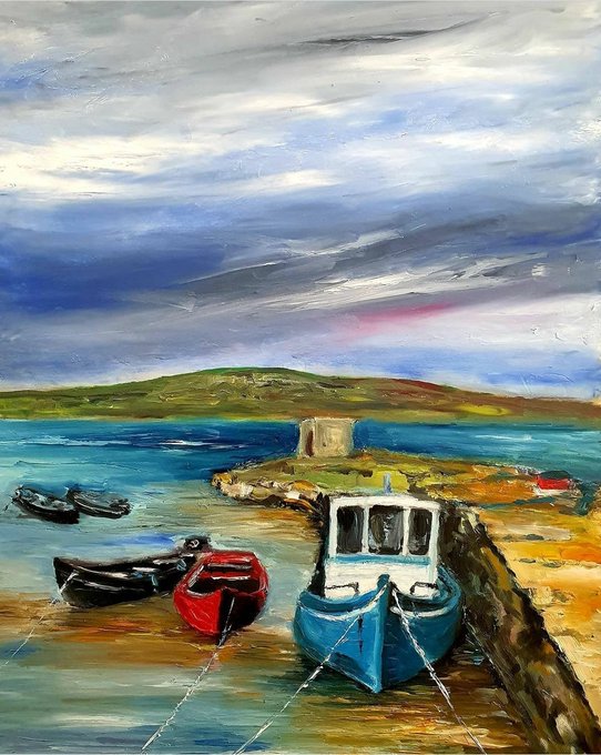 A new oil painting. #seascape #oilpainting #wildatlanticway #Connemara #ArtistOnTwitter #Oceans #sailing #boat #clouds