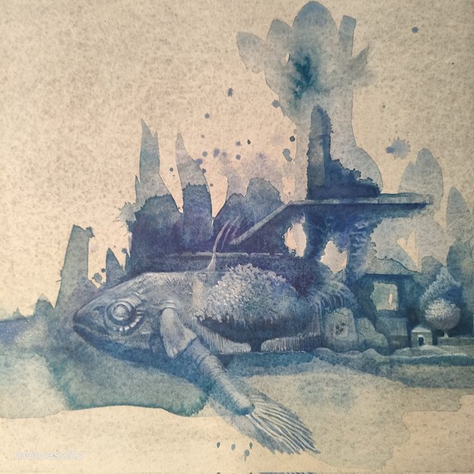 暑くなる前にひたすら描くね。 I just draw. 製作中 work in progress #watercolor #青 #水彩 #透明水彩 #drawing #ドローイング #blue #art #forgottenplaces #illustration #イラスト #イラストレーション #Remains #Ruins #遺跡 #シュールリアリズム #surrealism #contemporarydrawing