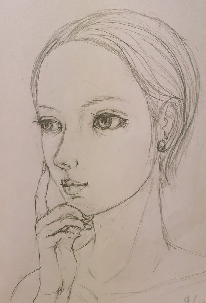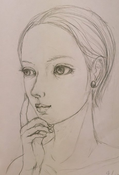 今日の落描き #rkgk #pencildrawing #coolbeauty ①構想を練る ②エスキースを描く ③ボツ ④①に戻る⤴️ 無限∞ループから未だ脱出できず😿 本日から4/17(日)迄、ギャラリーソラト『幻麗少女経典玖』に参加しています