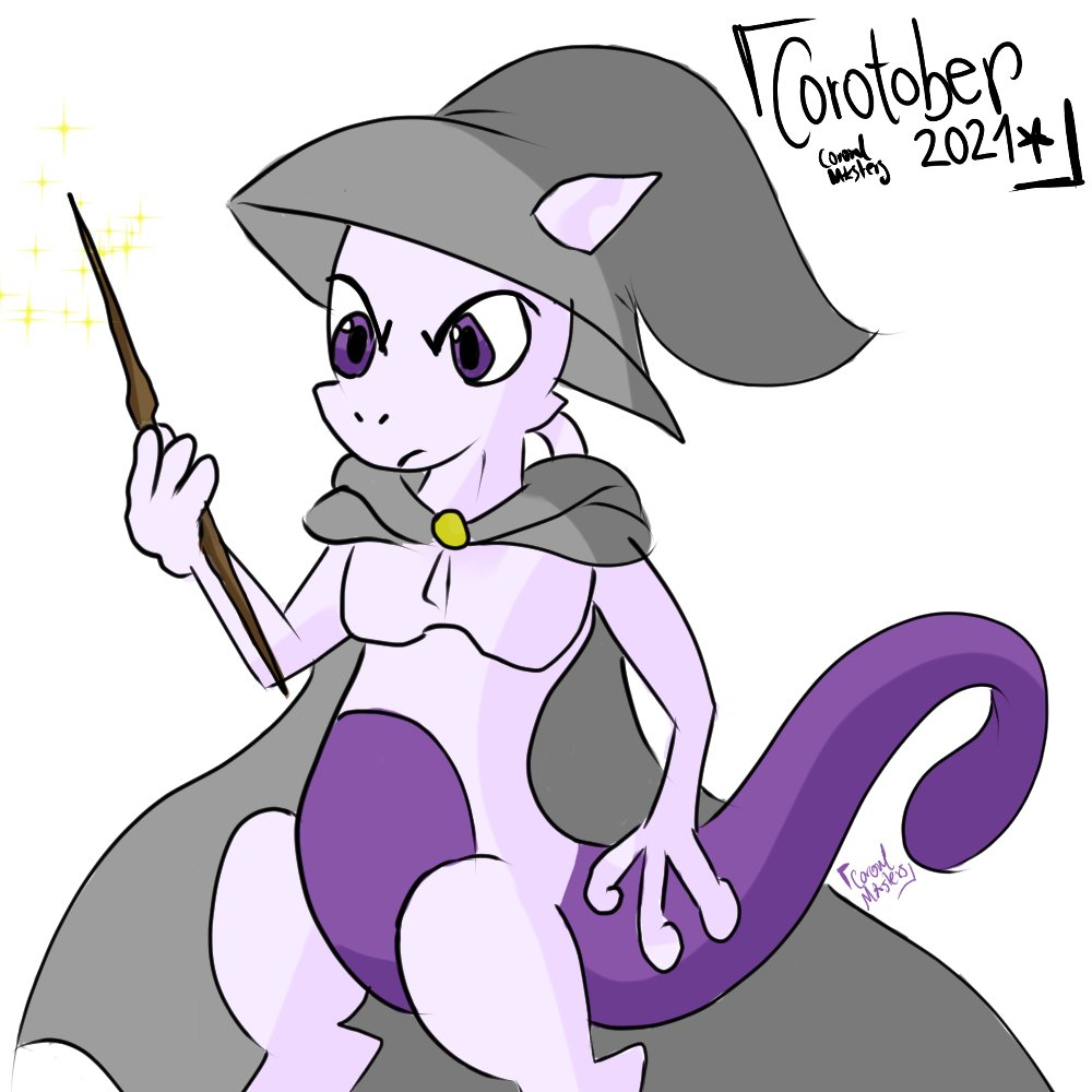 Octubre 1. Mewtwo vestido como Brujo para @AndorRobotnik #Corotober2021 #Inktober #AlternateInktober #Art #Pokémon #Mewtwo