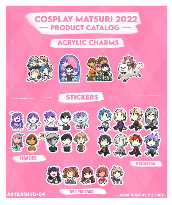 hello my merch catalog for cosmatsu is here !! i will be at table FO-02!!! see u there weeee #CosplayMatsuri2022 #CosMatsuriFanFair2022