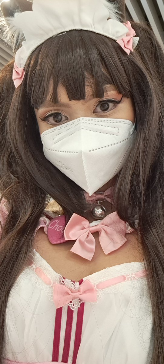 On Wednesday (We) wear pink! I cosplayed as Chocola in pink catmaid outfit with @erineberries as Vanilla on First day of #cosmatsurifanfair2022 #cosplay #nekopara First time too wearing this outfit as well~ (Also behind the scene at the last pic~)