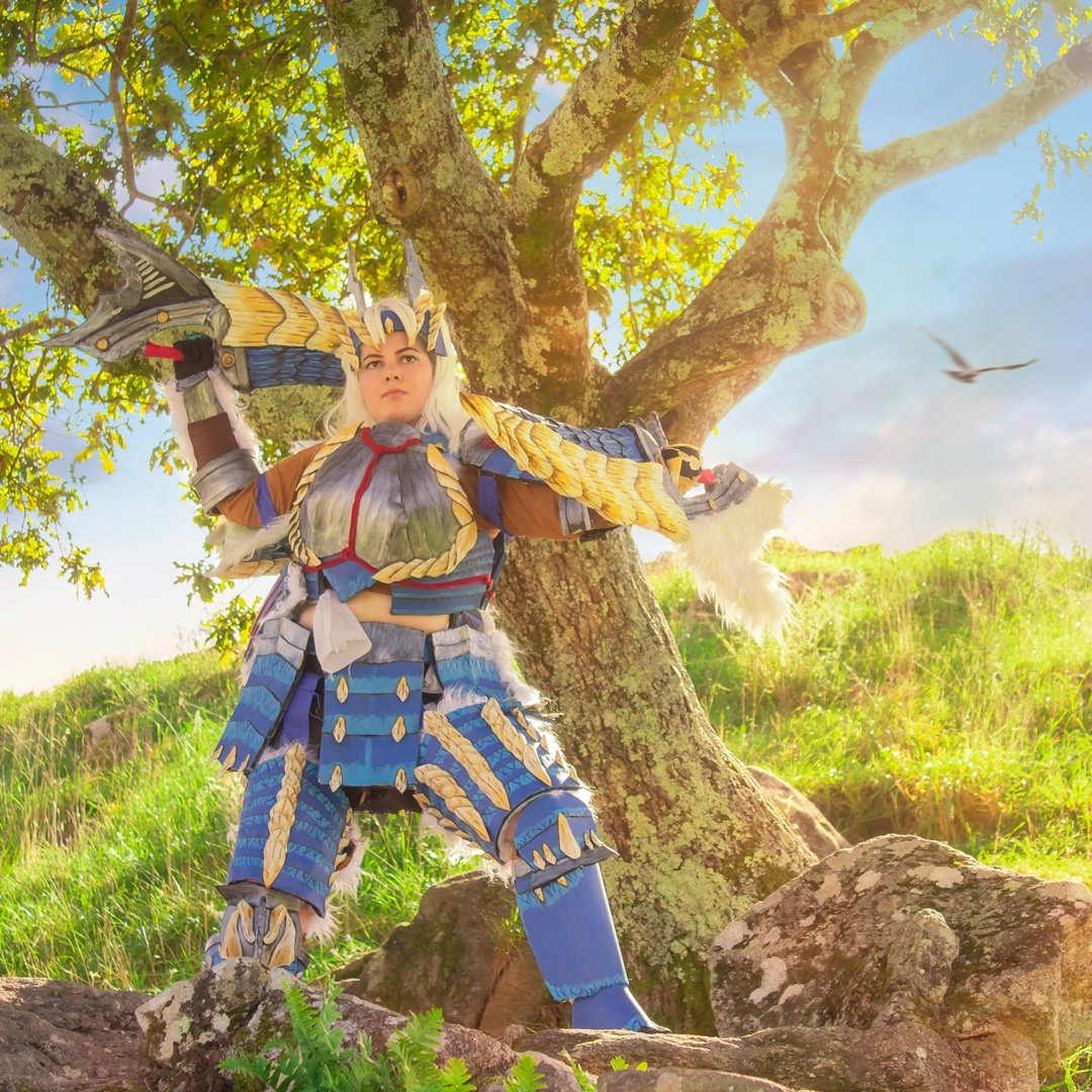 Bueno pues voy a participar con otro cosplay en el concurso de #PlayStation #CosPlay5 Aquí dejo mi set de Zinogre de Monster Hunter World (📸 amando.novoa.photographyIG) y de Ciri de The Witcher 3 (📸 Dakravenphoto) fotos en parques de Coruña y Vigo