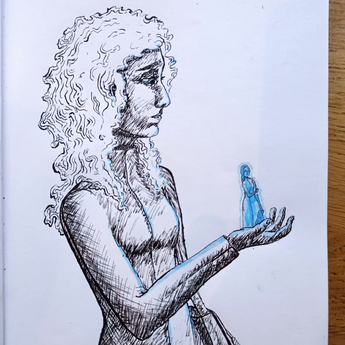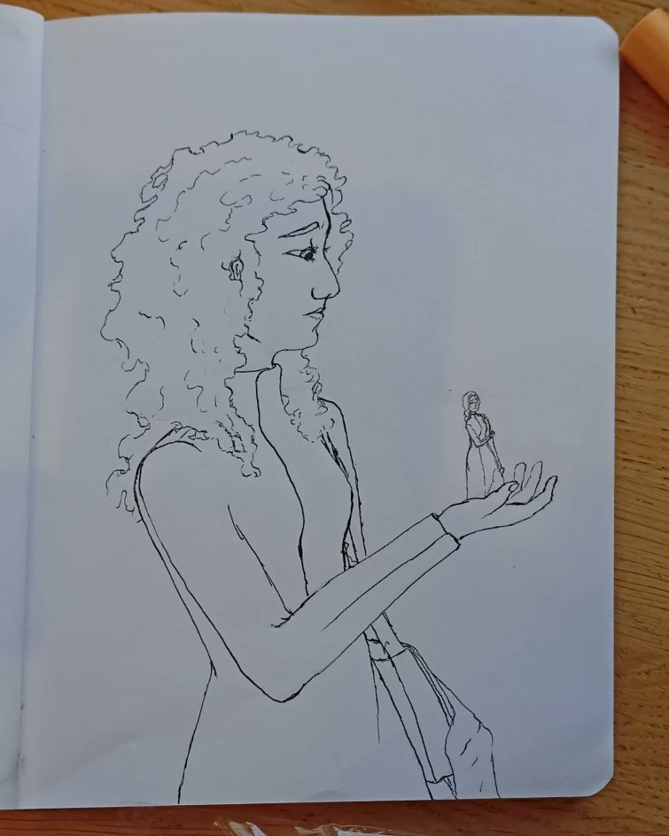 My post for #cosmereinktober is Shallan Davar creating an illusory Jasnah Kholin for Dalinar Kholin to show him her powers as a lightweaver. That scene was everything to me <3 #inktober2022 #Inktober @Cosmere_es #marioneta