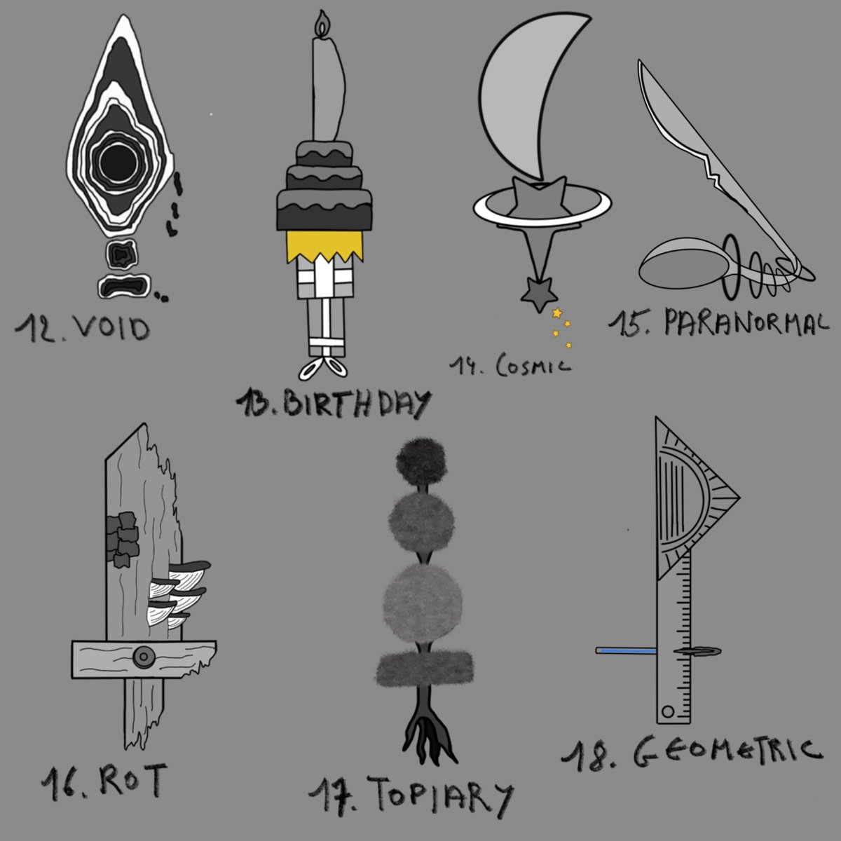 Third part of #swordtember2022 #swordtember #void #birthday #cosmic #paranormal #rot #topiary #geometric