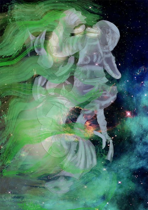 “Lost in space, unprepared for hazardous waves, what they do to us when cosmic radiation seeps our spacesuit and into our skin? We know the answer. Evolution.” Day 9 of #Octransfur, dabbing cosmic horror. #Octransfur #Inktober #Cosmic #TFEveryday