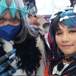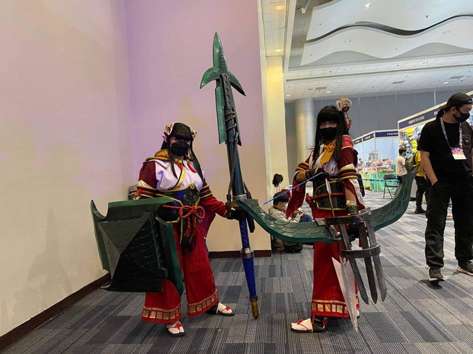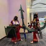 The twins are on the hunt! We cosplayed the wyverian twins and attended Cosplay Mania Day 2 with me as Minoto and @SleinYesWowNC as Hinoa! We had a blast!! Rip to our muscles tho #CosplayMania2022 #MonsterHunter #MonsterHunterRise