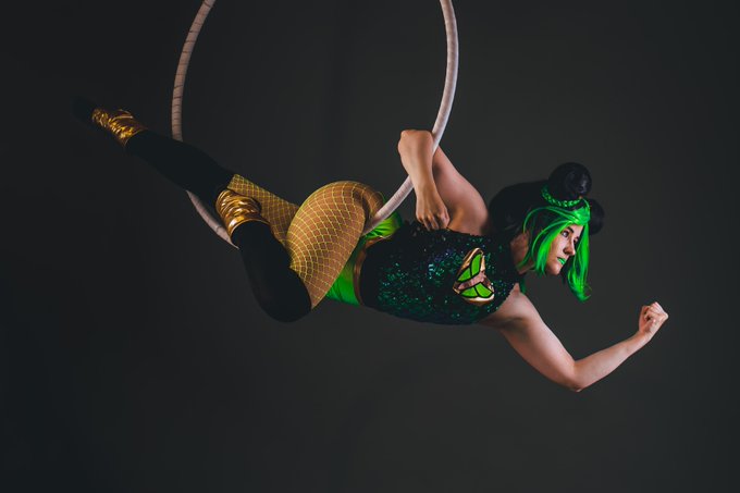 Why am I jumping through hoops when I could just swing from them? Featuring @CosplayChoreo as Jolyne Cujoh from Jojo's Bizarre Adventures. Shot at @kephoto. #cosplayphotography #cosplayphotographer #photoshoot #cosplay #jojosbizarreadventures #jolynecujoh #arielist